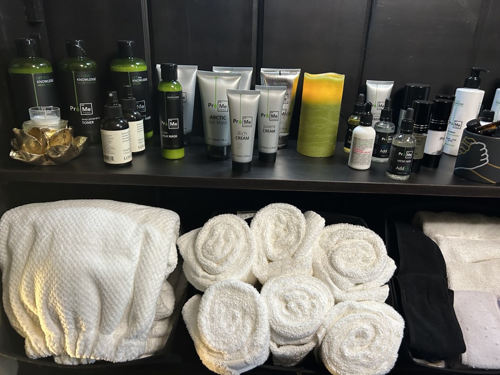 Pro-Me: My treatments feature a cutting-edge skincare brand known for it’s science-backed formulas and customized blending that enhance skin health and vitality.